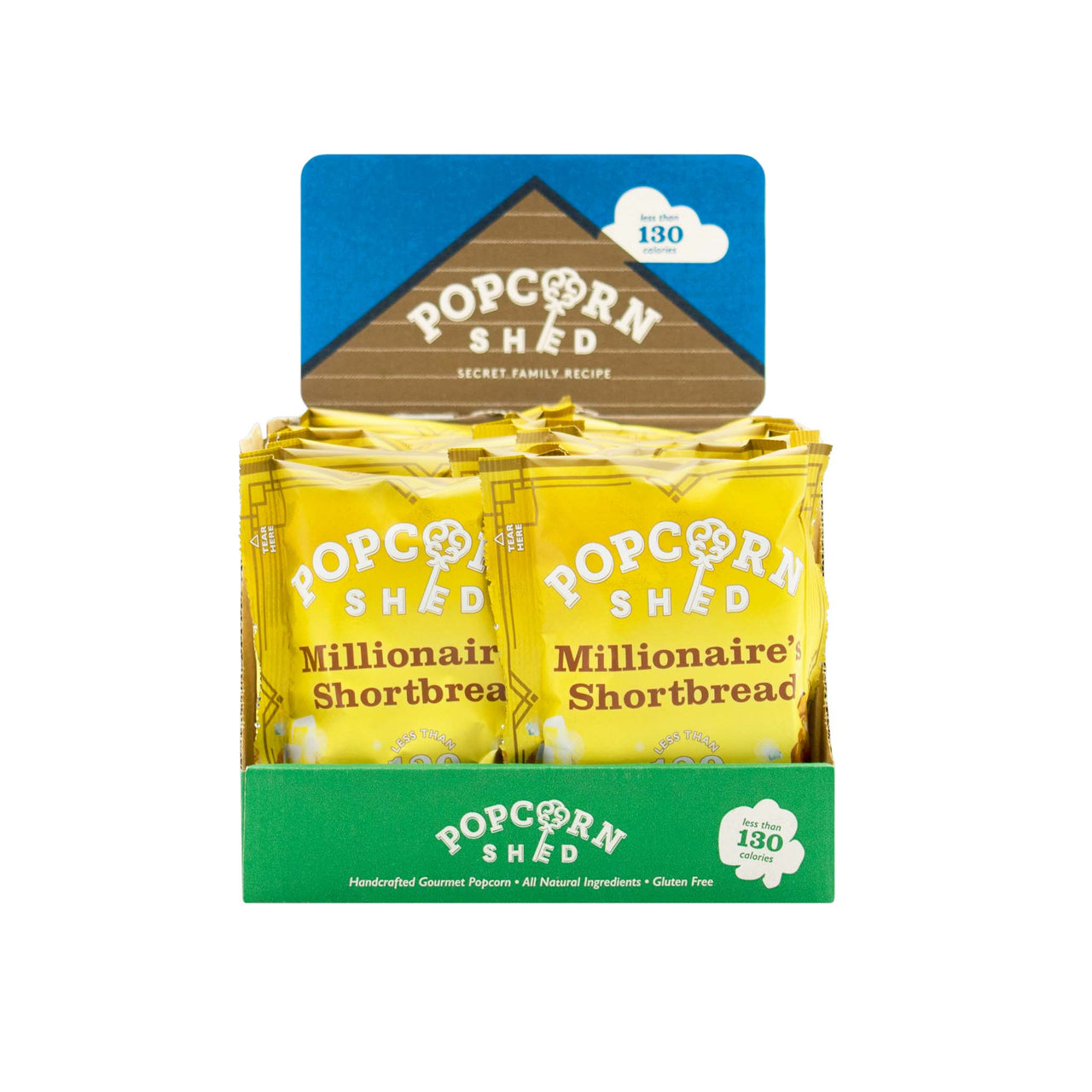 MILLIONAIRE’S SHORTBREAD GOURMET POPCORN - 16 x 24g Snack Packs
