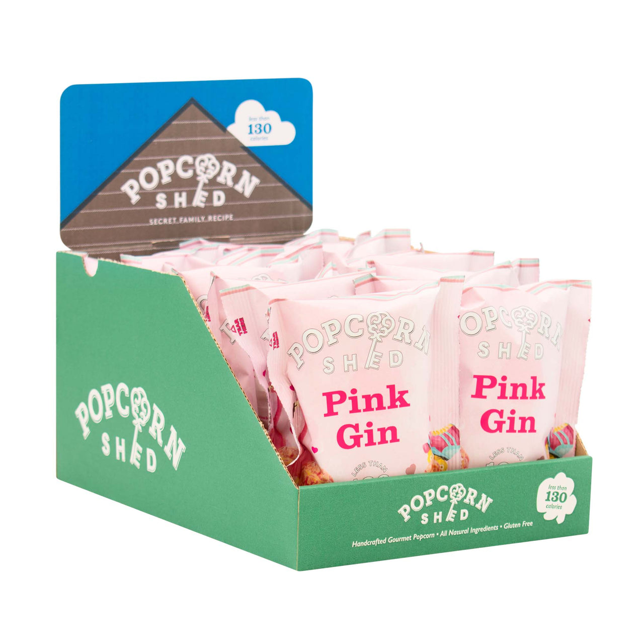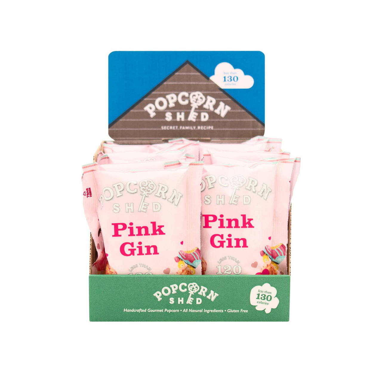 VEGAN PINK GIN GOURMET POPCORN - 16 x 24g Snack Packs