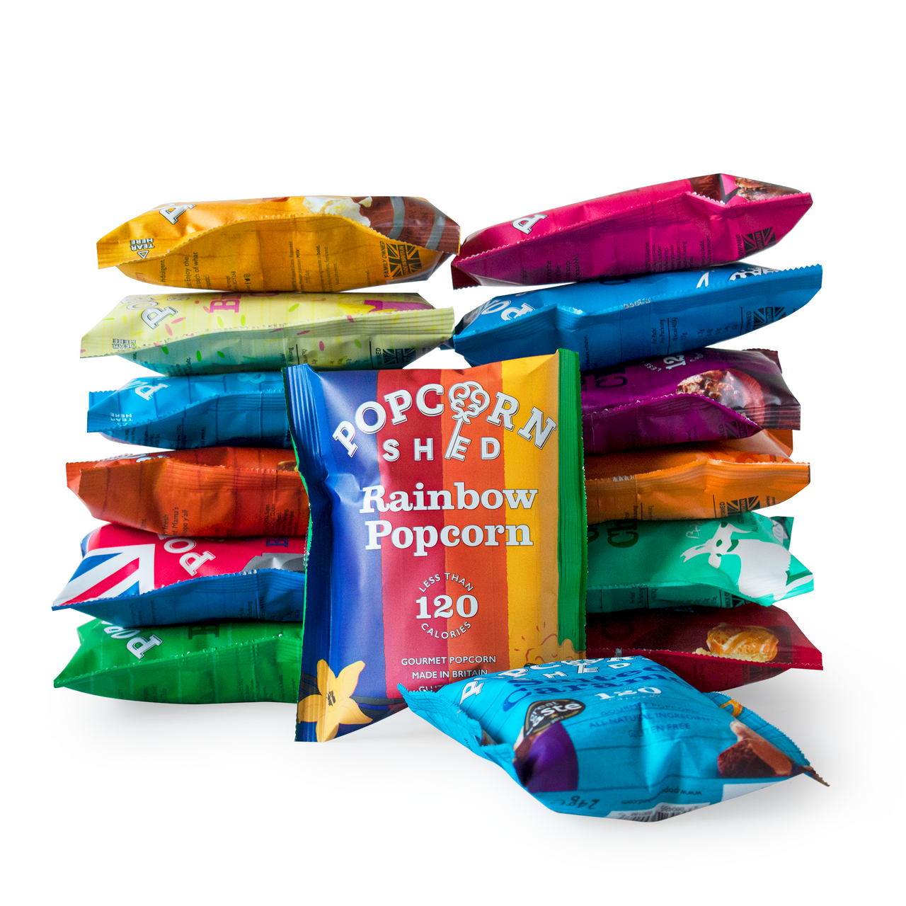 1 x Rainbow 24g - Multicoloured vanilla caramel popcorn. This rainbow popcorn is for the bold and brilliant, colourful and proud-of-it popcorn lover.